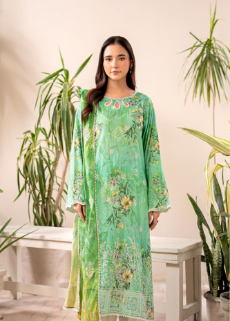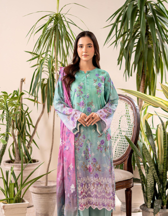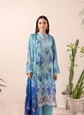 Digital Printed Lawn Suit with Embroidered Dupatta & Dyed Cambric Trouser